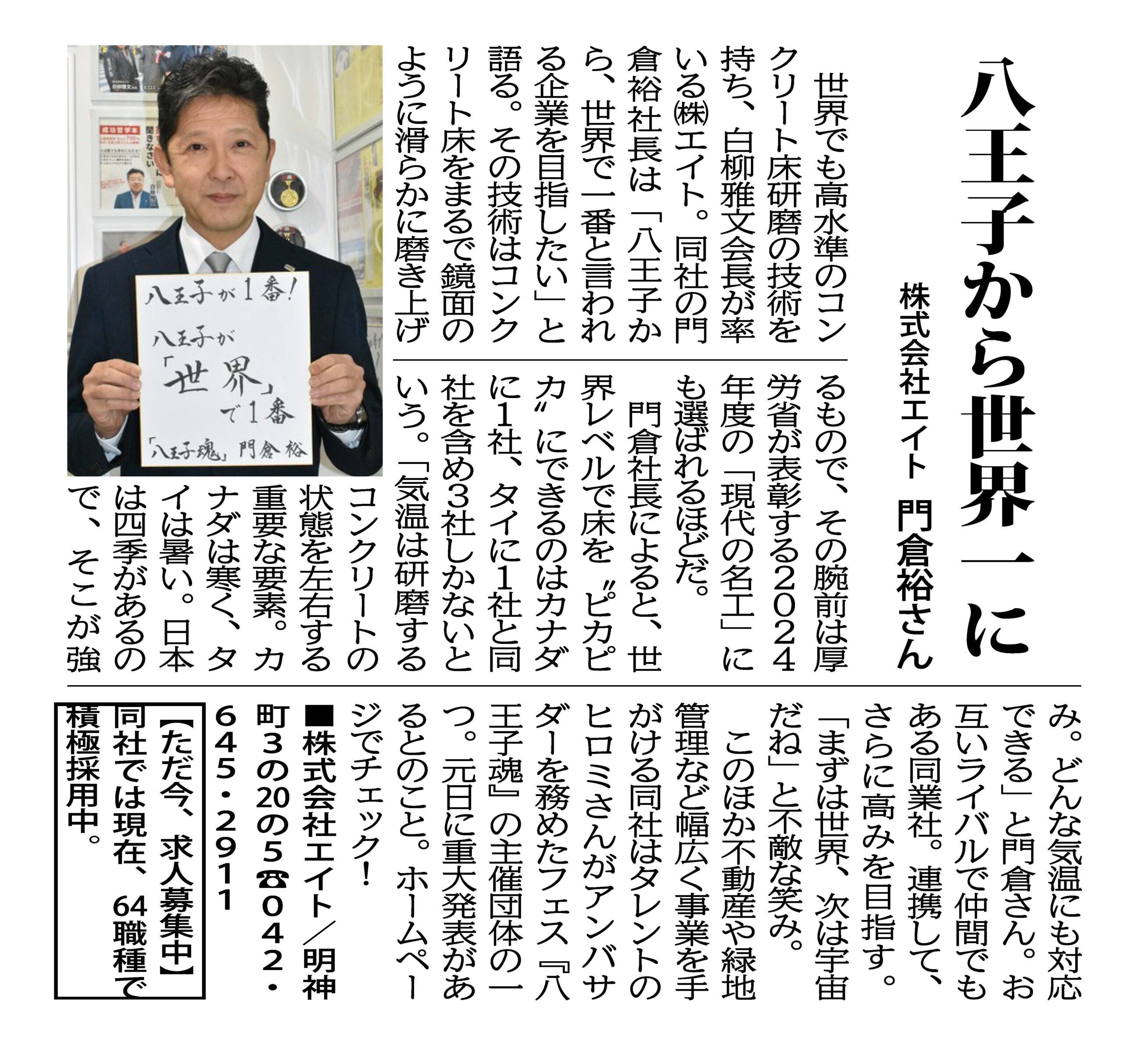「八王子から世界一に」株式会社エイト 門倉裕さん | 八王子 | タウンニュース