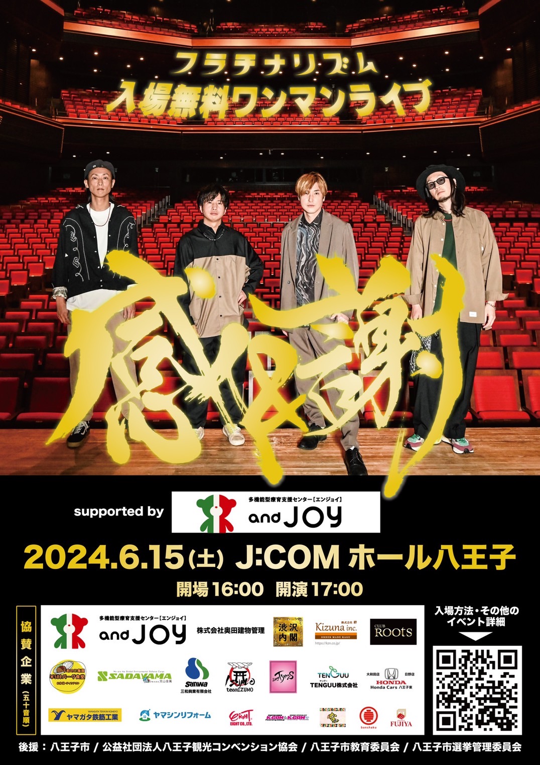 株式会社エイトは、2024年6月15日(土)、J:COMホール八王子にて開催されるフラチナリズム入場無料ワンマンライブ「感&謝」に協賛する運びとなりました。