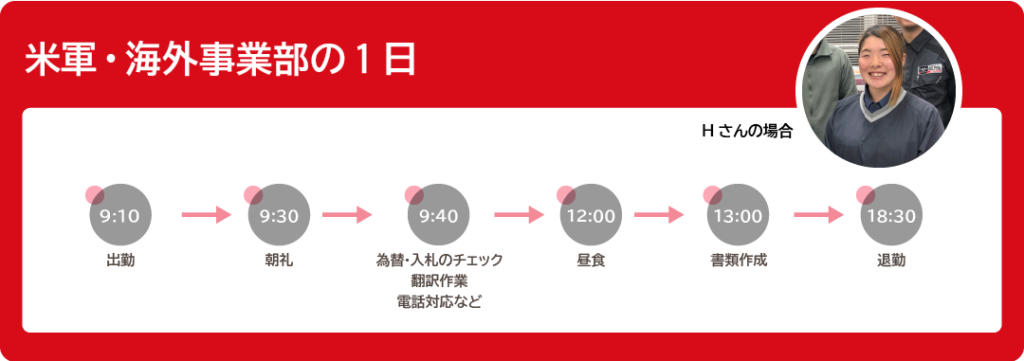 - 米軍・海外事業部:現場管理スタッフ、事務スタッフ